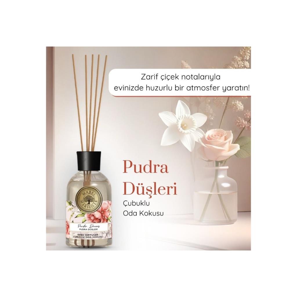 Mabel Marseille çubuklu oda kokusu serisi ile tarzınızı kokularla yansıtın! Pudra Düşleri Çubuklu Oda Kokusu 100 ML Üst nota: Nergis, aldehitler Orta nota: Gül, sardunya, sümbül, leylak Alt nota: Misk, tonka fasulyesi Kaşmir Çiçekleri Çubuklu Oda Kokusu 100 ML Üst nota:Galbanum, portakal, limon, lişi, mango, armut, şeftali, erik Orta nota:Karanfil, muskat, ylang ylang, mimoza, hanımeli, şakayık Alt nota:Misk, vanilya Mabel Marseille Ferah Esintisi Çubuklu Oda Kokusu 100 ML Üst nota:Aldehitler, pudralı notalar Orta nota:Çiçeksi notalar, beyaz çiçekler Alt nota:Misk, YERLİ ÜRETİMDİR. Pudra kokusu ile evinizi taze ve ferah bir atmosfere kavuşturur; Çubuklu formu sayesinde kolayca kullanılabilir ve her kullanımda etkili bir koku deneyimi sunar; 3'lü set halinde sunulan bu ürün, uzun süreli kullanım için idealdir;